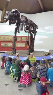 Großes Gewusel, aufgeregtes Quietschen und Kinderlachen und das an einem ganz ‚normalen‘ Dienstagmorgen im Waldkindergarten? Nein, das war kein ganz normaler Kindergartentag, denn an diesem Dienstag Ende Mai durften die Pustis im Rahmen ihres alljährlichen Kindergartenausfluges auf große Fahrt gehen. Auch dieses Jahr konnte der gesamte Ausflug über den Elternbeirat, genauer über die in der Vorweihnachtszeit von der Waldkindergartenfamilie erarbeiteten Einnahmen finanziert werden. Ziel war dieses Mal das Naturkunde- und Mammutmuseum in Siegsdorf und allein schon die Busfahrt dorthin – in ausgelassener Stimmung versteht sich – war für die Kinder ein erstes Highlight. In Siegsdorf angekommen machten die Pustis erst einmal gemütlich Brotzeit an der Traun, bevor es zusammen mit Museumsführerin Hanni an die Erkundung des Museums ging. Viel Spannendes gab es im Innenbereich zu sehen, zu hören und zu entdecken, am beeindruckendsten waren für die Kinder das Haifischmaul zum Hineinkraxeln, die Bärenhöhle und natürlich das riesige Mammutskelett.