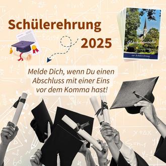 Da es uns nicht möglich ist, von allen ehrungswürdigen Schul-, Studien- und Berufsausbildungsabschlüssen Kenntnis zu erhalten, bitten wir, die Gemeindeverwaltung bis spätestens 25.08.2025 über Abschlüsse mit einer Gesamtnote von 1,0 bis 1,99 zu informieren.