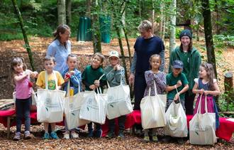Um die Kindergartenzeit zwar hinter sich zu lassen, aber nicht ganz zu vergessen erhielten die künftigen Schulkinder eine Stofftasche geschmückt mit dem Pusteblumenlogo und vollgepackt mit Geschenken und Erinnerungen an die Zeit im Waldkindergarten. Über ein Geschenk durften sich auch die verbleibenden Pustis freuen, denn die „Wackelzähne“ überraschten sie mit einer riesigen, von den Vätern selbst gebauten und mit vielen liebevollen Details ausgestatteten Matschküche, welche die Kinder sofort genauestens unter die Lupe nahmen und auch gleich testeten.