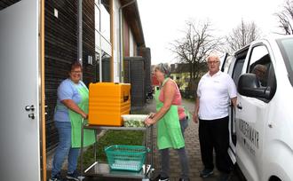 Anlieferung Essen: Punkt 11 Uhr liefert ein Mitarbeiter der Firma Vordermayr das Essen am Haus für Kinder an. Die Laufener Mitarbeiterinnen Doris Hans (links) und Tanja Breuer übernehmen.