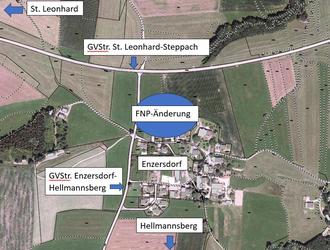 Der Änderungsbereich befindet sich an der Gemeindeverbindungsstraße von Enzersdorf nach Hellmannsberg. Zudem befindet sich der Änderungsbereich nördlich der Gebäude Enzersdorf 1, 1 a und 2.