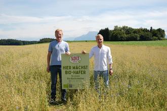 Biohafer von Bernhard Rehrl aus Saaldorf-Surheim und über einem Dutzend weiterer Biobauern aus zwei Ökomodellregionen (Waginger See-Rupertiwinkel und Inn-Salzach) steckt in den vegetarischen Produkten von Soto. Auf dem Bild von links: Thomas Schernthaner, Marketingleiter; Lennard Schramm, Geschäftsführer von SoTo.