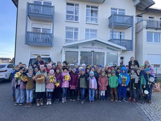 „Tragt in die Welt nun ein Licht!“ – Mit dieser musikalischen Botschaft, Gedichten und Instrumenten im Gepäck besuchten drei Klassen der Waginger Grundschule das Seniorenheim. Mit adventlichen Liedern, Gedichtvorträgen und einer rhythmischen Trommeleinlage bereicherten sie die Adventszeit der Heimbewohner. Dabei trafen sie mit ihrem kleinen Programm auf ein aufmerksames und ergriffenes Publikum. Die adventliche Begeisterung und die spürbare Freude über das erwartete Weihnachtsfest sprangen rasch über. Nicht wenige Zuhörer sangen beherzt mit. Einen Funken Licht weiterzutragen, das war den Schulkindern wohl gelungen – nicht nur symbolisch, sondern auch durch das Überreichen von selbstgebastelten Sternen. Mit einem süßen Dankeschön beschenkt, traten die Kinder schließlich den Rückweg zur Schule an. Die Grundschule Waging bedankt sich beim Seniorenheim für die gelungene Zusammenarbeit!
