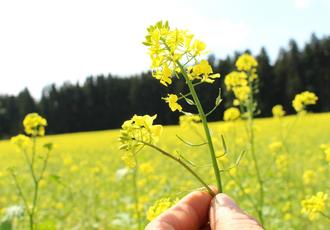 Ölsaaten gehören für einige ökologisch wirtschaftende Landwirten einfach dazu: Der Anbau ist jedoch aus mehreren Gründen eine Herausforderung. Wetter und Niederschläge müssen passen, und bei Kreuzblütlern wie dem Raps- oder Senfkorn muss man Schädlinge ohne den Einsatz von Insektiziden in den Griff bekommen. Einige Erzeuger pressen die Ölfrüchte selbst und vermarkten das daraus gewonnene Öl direkt ab Hof. Hauptabnehmer sind Privatleute, Einkaufsmärkte und Naturkostläden sowie die Betreiber von regionalen Ökokisten, etwa vom Verein „Ökogenuss Waginger See“, der eine Onlineplattform für bioregionale Produkte betreibt. Ein Erzeuger ist Andreas Maier, den die Heimatzeitung auf seinem Feld mit Sojabohnen trifft. Der Biobauer freut sich, denn die Pflanzen gedeihen prächtig, sie haben viele Schoten, die noch dazu prall gefüllt sind. „Das zaubert dem Landwirt ein Lächeln ins Gesicht“, scherzt der Nebenerwerbslandwirt. Weil die Ernte erst Ende September ansteht, will er in puncto Ernteertrag noch keine Prognosen abgeben. Nur so viel: Es schaut gut aus, vermutlich wird es eine seiner besten Ernten.