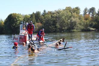 Um auch einmal die Gegenseite kennenzulernen durften Ruderer auf den Booten der Wasserwacht mitfahren, während umgekehrt die Wasserretter im Ruderboot versuchten nicht selbst zu kentern.