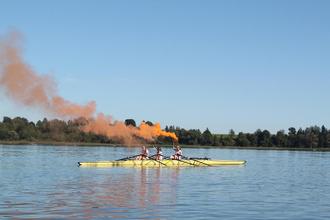 Jetzt wurde es praktisch: Einige Boote kenterten (diesmal absichtlich), um Rettungssituationen möglichst realistisch nachzustellen. Mit Rauch- und Leuchtfackeln wurden Notfälle simuliert, Ruderer mussten aus dem Wasser geborgen, versorgt und Boote abgeschleppt werden und die Rettung bewusstloser Personen aus den schmalen Ruderbooten wurde geprobt. Konzentriert und in bester Teamarbeit gelangen die eindrucksvollen Rettungsaktionen.