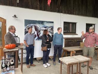 Ein Teil der Besuchergruppe im Gespräch mit Thomas Reese vom Huberhof in Wonneberg