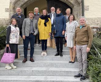Nach einer angenehm kurzweiligen Fahrt wurden wir am 01.10.2025 vom Ersten Bürgermeister und ersten Vorsitzenden der ILE an Rott und Inn Andreas Jakob des Markts Ruhstorf an der Rott im neu gestalteten Bürgerzentrum “Mathäser” empfangen. Bei Kaffee und Butterbrezen erhielten wir zunächst inspirierende Informationen über die Arbeit der ILE durch Umsetzungsbegleiterin Ursula Diepolder, die durch vielfältige Projekte überzeugen. Gerade der Schwerpunkt auf Tourismus und Landwirtschaft sowie das regelmäßige Veranstalten von Dialog-Foren zur Erarbeitung unterschiedlicher Themenbereichen ist dabei besonders aufgefallen. Auch der Einsatz des Regionalbudgets wurde detailliert besprochen – Ursula Diepolder gab Einblicke in die Arbeit des Entscheidungsgremiums und in die Umsetzung von ILE eigenen Projekten.