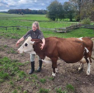 Die herdenälteste Kuh „Sola“ ist zutraulich und mag die Nähe zum Menschen sehr, berichtet Besitzerin Kerstin Mayer.