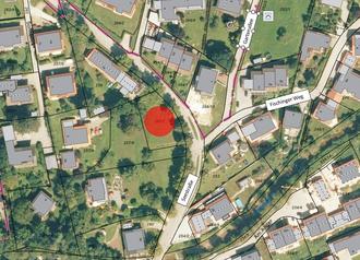 Lageplan: Rot = Zur Einziehung beabsichtigte Fläche; gelb = bereits neu gewidmete Verbindung öFW Nr. 179: