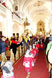 "Heute haben wir einen Tag der Freude und der Gemeinschaft und viele von uns haben sich maskiert und sind in eine andere Rolle geschlüpft. Bedenken wir dabei, dass wir als Christen keine Rolle spielen, sondern dass Christsein eine Lebenseinstellung ist" - so Pfarrer Sebastian Heindl. Den frohmachenden Gottesdienst beendeten die Kindergartenkinder von Waging, die eigens für das Jubiläum und für die Faschingsmusik ein Lied einstudiert haben. Alsdann ging es zu einem Standkonzert und mit einem Festzug zum Festzelt zum Festausklang.