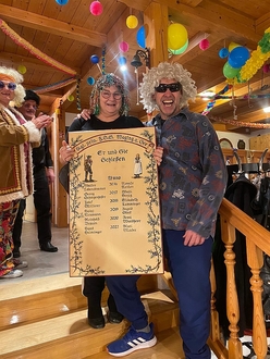 Am Weiberfasching trafen sich die maskierten Waginger Schützinnen und Schützen zum traditionellen Er & Sie Schießen. 1. Schützenmeisterin Rosmarie Mader stellte per Los Paare zusammen. Da mehr Herren als Damen vorhanden waren gab es zwei dreier Paare. Da auf Gaudischeiben geschossen wurde gab es auch negative Ringe. Daher schied der Herr mit dem schlechteren Ergebnis aus. Vor dem Er & Sie Schießen spendierten die Herren ihren Damen ein Stamperl Zielwasser. Anschließend wurde noch auf Luftballons geschossen in denen sich Losnummern für Preise aber auch Nieten befanden. Er & Sie Paar 2023 wurden Renate Reiter und Hans Helminger mit 245 Ringen