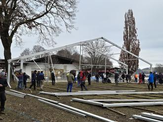 Nach vielen Monaten Planungen und zahlreichen Sitzungen des Festausschusses der Faschingsmusi Waging a. See war es am Freitag, den 7. Februar soweit, dass die Aufbauarbeiten für das große Festzelt begannen. Das ganze Wochenende unterstützten dann unzählige Helfer die Faschingsmusi um das 100jährige Gründungsfest vorzubereiten. Neben den Waginger Ortsvereinen und Organisationen waren auch viele freiwillige Helfer vor Ort. Die „Feinarbeiten“ zur Dekoration des Festzeltes nahmen dann noch die weiteren Tage in Anspruch.