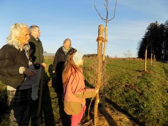 Schon öfter waren Kinder, die mithelfen wollten, zu Gast auf den Obst- und Gemüsefeldern von Kristine Rühl (links) in Tettenberg bei Otting. Das Bild entstand bei einer Baumpflanzaktion im Herbst 2024, die auch von Bürgermeister Matthias Baderhuber, einer der beiden Vorstandssprecher der Ökomodellregion Waginger See-Rupertiwinkel, und deren Managerin (Dritte von links) Marlene Berger Stöckl aufmerksam mitverfolgt wurde.