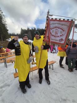 Aber auch sportlich machten die Musiker von sich zu hören. Beim „Zipfelbobrennen“ im Skigebiet am Götschen im Bischofswiesen belegte das Faschingsmusiteam mit Stefan und Bernhard Mühlbacher den hervorragenden 2. Platz. Eine großartige Leistung, wenn man bedenkt, dass sich insgesamt 123 Zwei-Mann-Teams an dem Wettbewerb beteiligten. Natürlich sorgte auch hier die Faschingsmusi für Stimmung während der Wettkämpfe.