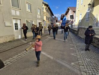 Am Faschingsdienstag hieß es dann 6.30 Uhr „Weckruf“ durch den Ortskern. Schließlich gilt es die Bevölkerung mit Blasmusikklängen zu wecken und im Anschluss noch einige Geschäfte zu besuchen, bevor dann der Waginger Fasching mit dem Faschingszug seinen Höhepunkt findet, den die Waginger Faschingsmusi traditionell musikalisch anführt. Dazu gehören natürlich auch das Ständchen beim Bürgermeister und Pflegeheim. Mit dem Gemeinschaftsspiel am Marktplatz und dem Abschlusskonzert in der Bahnhofstraße geht dann der diesjährige Fasching zumindest offiziell zu Ende. Aber wie heißt es so schön: Nach dem Fasching ist vor dem Fasching – besonders in Waging und um den musikalischen Nachwuchs der Waginger Faschingsmusi braucht man sich auch keine Sorgen zu machen!