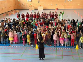 Mit viel Musik, Bewegung und guter Laune feierte die Grundschule Waging ihr großes Faschingsfest. Den Auftakt bildete eine fröhliche Polonaise: Die gesamte Schulfamilie zog gemeinsam von der Schule zur Bergader Arena, wo die bunt verkleideten Kinder bereits von mitreißender Musik empfangen wurden. Schnell verwandelte sich die Halle in eine ausgelassene Tanzfläche.
