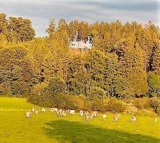 Im viehhaltenden Gemischtbetrieb mit Grünland und Ackerland sind die Nährstoffkreisläufe durch den reichlich vorhandenen organischen Dünger leichter zu schließen als im Bio-Ackerbaubetrieb, der laut EU-Bioverordnung keine leicht löslichen Mineraldünger zukauft. Hier die Kühe von Biobraugerstensprecher Hans Empl auf der Weide.