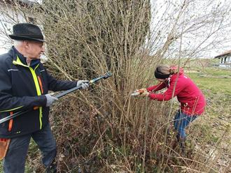 Bei wechselhaftem, teilweise windig nasskaltem Wetter trafen sich sechs Gartler am 16.3.24 zum Strauchschnittkurs in Tettelham. Darunter der Baumwart des Ottinger Gartenbauvereins Hans Seehuber und die Gastgeberin und Gartenpflegerin Barbara Pflug. Zuerst wurde Grundsätzliches zum Strauchschnitt geklärt, wie etwa, dass zwischen 1.März und 29.September beim Strauchschnitt besonderes Augenmerk auf den Tierschutz gelegt werden muss. Das ist so auch in der Naturschutzgesetzgebung festgelegt. Danach zeigte Hans Seehuber sein umfangreiches Repertoire an Schnittwerkzeugen und erklärte die Verwendung. Im Laufe des Vormittags konnte dann jeder nach fachkundiger Anleitung verschiedene Straucharten in die richtige Form bringen. Dabei kommt es darauf an, die natürliche Wuchsform der Sträucher zu fördern, die Sträucher gesund und blühfreudig zu erhalten und gegebenenfalls saftigsüße, gesunde Früchte zu ernten.