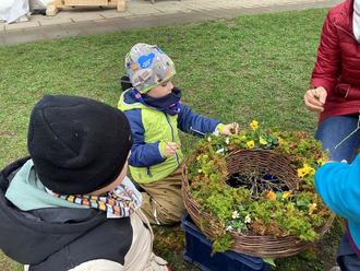 Außerdem wird natürlich fleißig gebastelt: Osternester, Osterkerzen und Eierfärben sind nur einige Beispiele. Auch wird fleißig gesungen und für den Ostergottesdienst mit Uli Jauernig geprobt.