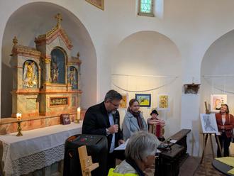 Nach musikalischen Beiträgen der Geschwister Katharina und Maxi Huber sowie einem gemeinsamen „Vater unser“ sprach Herr Riedl ein Segensgebet. Die Ausstellung ist bis zum 21. September 2025 täglich geöffnet. Besucher sind eingeladen, sich im ausliegenden Gästebuch einzutragen.
