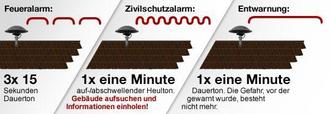 Entwarnung gibt ein einminütiger, aber dann gleichbleibender Heulton.