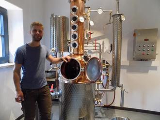 Der junge Brenner Franz Gramminger vor dem Herzstück seiner Brennerei