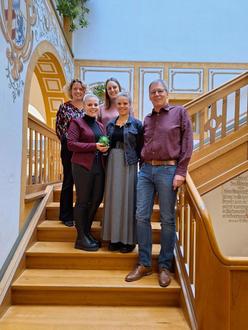 In Vertretung aller Mitarbeiterinnen und Mitarbeiter überreichten Annalena Fischer, Tanja Würzinger, Martina Karlstetter und Alina Wichtlhuber am 21. Dezember 2023 eine Spardose voller Münzgeld in Höhe von 360 Euro an ersten Bürgermeister Karl Schleid.