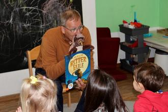 „Ein Buch geht auf die Reise“ – diese Aktion in der Vorweihnachtszeit startete im November am bundesweiten Vorlesetag in der KiTa Regenbogen unter der Schirmherrschaft unseres Bürgermeisters Karl Schleid. Jährlich nimmt die KiTa Regenbogen als Sprach-KiTa, diesen Tag als Anlass sich etwas Besonderes zum Thema Lesen und frühe Literacy auszudenken. Die Sprach-Fachkraft der KiTa, Frau Verena Wallner, wollte für die Vorweihnachtszeit heuer alle mit ins Boot holen und plante einen Bücherkoffer. Darin das Buch „Ritter Eule“, das vom Bürgermeister für die Regenbogen Kinder vorgelesen wurde. ER schrieb auch den ersten Eintrag in ein besonderes Gästebuch. Dieses reist zusätzlich im Koffer mit und alle beteiligten Häuser sind eingeladen, eine Seite zu gestalten. Vielleicht stieß die Geschichte über eine kleine Eule die Ritter werden wollte, die Phantasie der Kinder an, denn obwohl die Voraussetzungen für ihren Berufswunsch mehr als schlecht waren, gelang ihr am Ende das Undenkbare. Mit viel Selbstbewusstsein, einem festen Glauben an die eigenen Stärken und großartigen Verbündeten, konnte nichts mehr schiefgehen. So ist die kleine Eule noch bis nach den Ferien auf Reisen. Die Erlebnisse auf Ihrem Weg durch die Stadt sind dann in dem Gästebuch verewigt und vielleicht wird das im kommenden Jahr erneut Lesestoff begleiten.