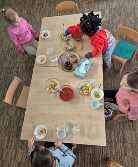 Ein wichtiger Bestandteil des Konzepts ist die aktive Beteiligung der Kinder. Sie helfen beim Vorbereiten, schneiden Gemüse und decken den Tisch. So erleben sie unmittelbar, wie ihr Mittagessen entsteht und entwickeln spielerisch ein Bewusstsein für Lebensmittel und gesunde Ernährung.
