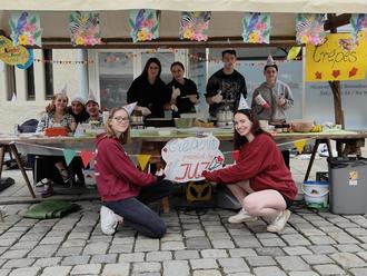 Nach langem, wetterbedingtem Zögern hat sich das Juz-Crépe Team doch dazu entschlossen auch dieses Jahr am Markt der Vereine teilzunehmen. Zum Glück, denn nach zögerlichem Beginn lief der Verkauf dann doch sehr gut an und zum Schluss waren wir auch diesmal wieder ausverkauft. Viel wichtiger als der wirtschaftliche Erfolg war jedoch, dass alle Teilnehmer wieder mit Begeisterung dabei waren und einen tollen Tag erlebten. Da es sich beim ganzen Team um erfahrene alte Hasen handelte, die bereits die letzten Jahre schon bei den Crépe-Ständen mitarbeiteten, liefen auch die Vorbereitungen routiniert und problemlos ab.