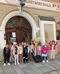 Zunächst sammelten alle Kinder Informationen – warum braucht man ein Hotel, wie sieht es dort aus, wer arbeitet dort, was muss man beachten, wie bekommt man ein Zimmer und noch vieles mehr. Damit es nicht nur bei der Theorie bleibt, wurde ein „Hotelzimmer“ in der Gruppe eingerichtet und ein Besuch im Hotel Pfaubräu in der Altstadt absolviert.