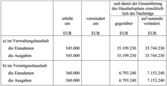 Der als Anlage beigefügte Nachtragshaushaltsplan wird hiermit festgesetzt; dadurch werden
