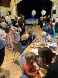 Im Rahmen des jährlichen „Kennenlernfestes“ der Kita Regenbogen fand am 27. September die Vernissage des Kunstprojekts „Unser kunterbuntes Jahr“ im Postsaal statt. Die Familien und alle Interessierten konnten durch die Ausstellung schlendern und bei einem Brunch des Elternbeirats, Gespräche führen und Kontakte knüpfen. Für die Kinder waren verschiedene Kunstaktionen geboten (z.B. Kinderschminken – siehe Foto). Bürgermeister Karl Schleid war gekommen, um die Ausstellung zu eröffnen und traf auf viele kleine Künstlerinnen und Künstler. Die Kunstwerke wurden im Rahmen des Projektes „Unser kunterbuntes Jahr“ gestaltet. Die Aktionen fanden zwischen Januar und Juni in der Kindertagesstätte Regenbogen statt. Dazu hatten zwei Erzieherinnen im SozialRaum Trostberg ein Kunstatelier eingerichtet, das sie mit verschiedenen Kindern regelmäßig in der Kindergartenzeit besuchten. Es gab auch verschiedene Kooperationspartner, die an dem Projekt teilnahmen, darunter der Integrationskindergarten in der Schulstraße und die Rasselband. Rund um die Themen „Natur“ und „Jahreszeit“ malten und gestalteten die Kinder auf verschiedenen Materialien wie Papier, Folien, Holz, Glas und alten CDs. Höhepunkt des „kunterbunten Jahrs“ war ein Eltern-Kind-Nachmittag, an dem ein Künstler aus Traunstein, Herr Lehmann, seine Werke als Inspiration ausstellte. Dazu waren auch andere Einrichtungen eingeladen. An diesem Nachmittag konnten die Eltern mit ihren Kindern auch nach Herzenslust kreativ werden. Die Aktionen fanden als Teil des „KiTa-KAT“-Projekts statt (Kooperation für mehr Achtsamkeit in Trostberg). Im Rahmen dieses Projektes arbeiten verschiedene Akteure zum gleichen Thema miteinander. Alle Besucher der Vernissage waren sich einig: „Das kreative Ergebnis der jungen Künstlerinnen und Künstler war definitiv sehenswert!“
