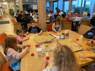 Ein Hauch von Weihnachten lag am vergangenen Dienstag im Purvital in der Luft, als die Kinder des Regenbogen Kindergartens gemeinsam mit den Bewohnerinnen und Bewohnern des Seniorenzentrums sich die Backschürzen umbanden. In fröhlicher Atmosphäre wurde geknetet, ausgestochen, geformt – und vor allem viel gelacht.