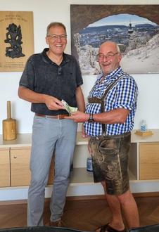 Spendenübergabe für den Sozialfonds: Bürgermeister Karl Schleid und Lothar Kretschmer.