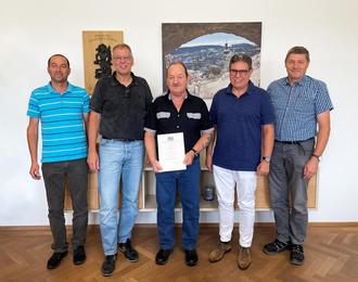 Im August konnte Bürgermeister Karl Schleid Herrn Manfred Senft, Mitarbeiter im städtischen Bauhof, zu 25 Dienstjahren gratulieren. Herr Senft erhielt eine Urkunde der Bayerischen Staatsministerin Ulrike Scharf. Auch der Personalratsvorsitzende, Martin Gastager, Bauhofleiter Alois Englbrechtinger und Stadtkämmerer Armin Gois überbrachten ihre Glückwünsche.