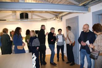 Gestärkt und gut gelaunt begaben sich die Gäste anschließend – mit Orangensaft und Sekt versorgt – auf eigene Faust auf Entdeckungstour durch das Haus. Ein besonderer Service für die Besucherinnen und Besucher bestand darin, dass nahezu alle Künstlerinnen und Künstler vor Ort anwesend waren und bereitwillig Auskunft zu Technik, Entstehungsprozess und persönlicher Motivation gaben. In offenen Gesprächsrunden wurde über Kunst gefachsimpelt und diskutiert, wobei viele Gäste die eine oder andere Inspiration für eigene zukünftige Projekte mit nach Hause nahmen.