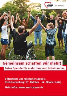 Die Arbeiterwohlfahrt führt vom 07. bis einschließlich 13. Oktober die Herbstsammlung durch, die unter dem Motto „Gemeinsam schaffen wir mehr …“ lautet. So sehr sich die Welt auch verändert, so gibt es doch nach wie vor zu viele Menschen, die materielle Not leiden müssen. Diese zu lindern, oder im Vorfeld zu verhindern, ist die Aufgabe der AWO. Seit der Gründung vor 100 Jahren gestaltet die AWO Angebote und bietet Dienste an, mit denen Menschen in schwierigen Lebenslagen unterstützt werden. Damit diese Ziele weiterhin erreicht werden, wird um Unterstützung bei der Sammlung gebeten.