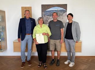 Im Oktober konnte Bürgermeister Karl Schleid drei Beschäftigten der Stadt Trostberg zu ihren jeweils 25 Dienstjahren gratulieren. Rita Fichter-Rollfinke als Musikschullehrerin, Johann Scheitzeneder als Mitarbeiter im Bauhof und Alois Englbrechtinger als Bauhofleiter erhielten eine Urkunde der Bayerischen Staatsministerin Carolina Trautner. Auch der Personalratsvorsitzende, Martin Gastager, sowie der Leiter des Fachbereichs „Planen und Bauen“, Bernhard Unterauer, bzw. der Leiter der Musikschule, Martin Steinack, überbrachten ihre Glückwünsche.