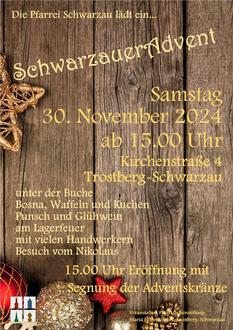 Am Samstag, 30.11.2024 findet wieder der Schwarzauer Advent am Platz unter der Buche an der Schwarzauer Kirche statt.
