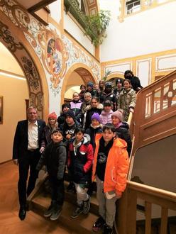 Erster Bürgermeister Karl Schleid begrüßte seine jungen Ehrengäste ganz herzlich. Mit Hilfe einer kurzen Präsentation und dem Trostberger Stadtfilm gab er einen Überblick über das Leben in der Stadt. Darin fanden sich auch reichlich Antworten auf die vielen Fragen der Schülerinnen und Schüler, die sie sich bereits lange vor dem Rathausbesuch überlegt hatten. Am Ende durften die Gäste noch das Vorzimmer und das Büro des Bürgermeisters unter die Lupe nehmen. Bürgermeister Schleid zeigte ihnen auch die Trostberger Bürgermeisterkette, die er nur bei ganz besonderen Anlässen, wie z.B. Trauungen, trägt. Danach ging es für die Klasse mit viel neuem Wissen und spannenden Eindrücken wieder zurück in die Schule.
