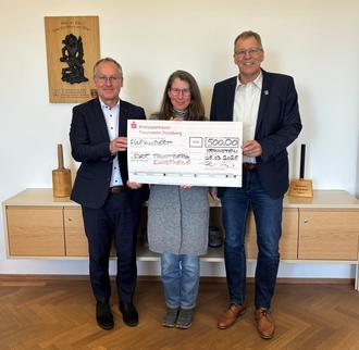 Auf dem Foto v.l.: Mario Kurz (Kreissparkasse Traunstein-Trostberg), Susanne Herrler (Arbeitsbereich Kultur), Erster Bürgermeister Karl Schleid,