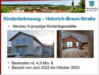 Ausschnitt aus der Präsentation der Bürgerversammlung. Hier ging es um die Errichtung der neuen Kindertagesstätten.