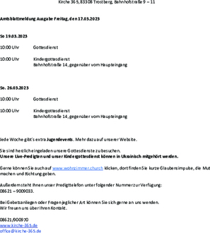 Außerdem steht Ihnen unser Predigttelefon unter folgender Nummer zur Verfügung: 08621 - 9009033.