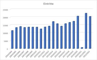 Deutlich erfolgreicher war lediglich die Corona-Saison 2021/2022, als es zum Eisstadion wenig Alternativen zur Freizeitgestaltung gab. Damit setzt sich der positive Trend der letzten Jahre fort und zeigt, wie attraktiv unser Eisstadion nach wie vor ist. Überwiegend den jugendlichen Eisläufern waren die Samstagabende vorbehalten, das waren zusammen mit den Sonntagnachmittagen die besucherstärksten Zeiten für den Publikumseislauf. Auch außerhalb des Publikumseislaufes war das Stadion beinahe zu 100 % ausgebucht.