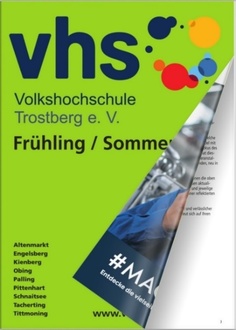 Das aktuelle Kurs-Programm als „Blätterbuch“: Stöbern und Schmökern am Monitor von Handy, Tablet oder Computer. Es wird auf der Homepage www.vhs-trostberg.de präsentiert und alle Informationen sind hier rund um die Uhr zu finden. Mit dem „Warenkorb“ geht die online-Kursbuchung einfach und schnell.