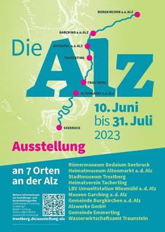 Seit der letzten Eiszeit hat die Alz die Landschaft und das Leben in ihrem Tal geprägt. Bis Anfang des 20. Jahrhunderts war sie ein Wildfluss mit breitem Bett und vielen Nebenarmen, dessen Kraft zum einen als Ressource und Grundlage für viele Handwerke diente, der zum anderen aber auch mit seinen Hochwassern immer wieder Existenzen bedrohte. Sein Ausbau und seine Regulierung im frühen 20. Jahrhundert schufen die Voraussetzungen für die Ansiedlung der Industrie in Südostbayern und veränderten die Gestalt des Flusses stark. Von 10. Juni bis 27. Juli 2023 zeigt das Gemeinschaftsprojekt „Die Alz“ die Geschichte des Flusses. Verschiedene Kultureinrichtungen in Orten entlang der Alz beteiligen sich mit Ausstellungen und Begleitprogrammen.