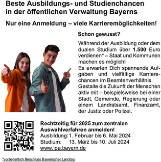 Nähere Informationen unter www.trostberg.de unter der Rubrik „Stellenangebote“, direkt über den QR-Code, sowie an unserem Stand auf der Ausbildungsroas.