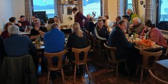 Nach einer kleinen Stärkung mit Glühmost, Keksen und Lebkuchen führte der Rückweg über die Sonnenstraße und die Bergstraße zurück zum Skilift. Im Liftstüberl erwarteten die Betreiber Stephanie und Johann Enzinger die Wandergruppe bereits mit einer herzhaften Brotzeit. In gemütlicher Atmosphäre ließ man den gelungenen Tag bei angeregten Gesprächen und Diskussionen ausklingen.